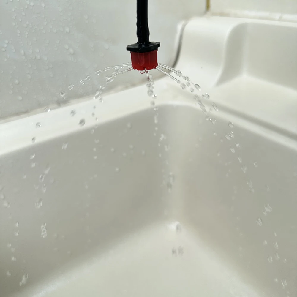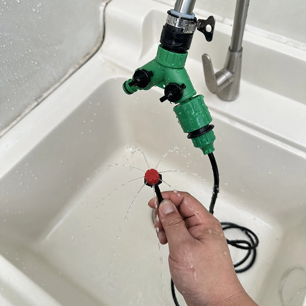 -Adjustable Drip Head: 8-OUTLET. Adjustable – Its flow adjustment means watering can be varied from a big spray, to gentle stream pattern to a drip action or shut off completely. Simple finger-tip cap control for flow adjustment.