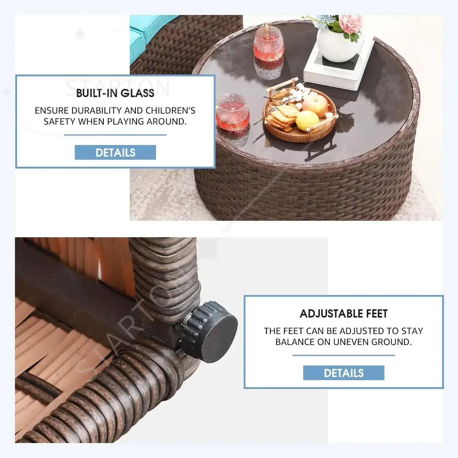 COMVENIENT – The coffee table is perfect combine with this set. Tempered glass is insert, which provides more durability and safety. Plush cushion covers come with a zipper for easy washing. Easy to maintain.