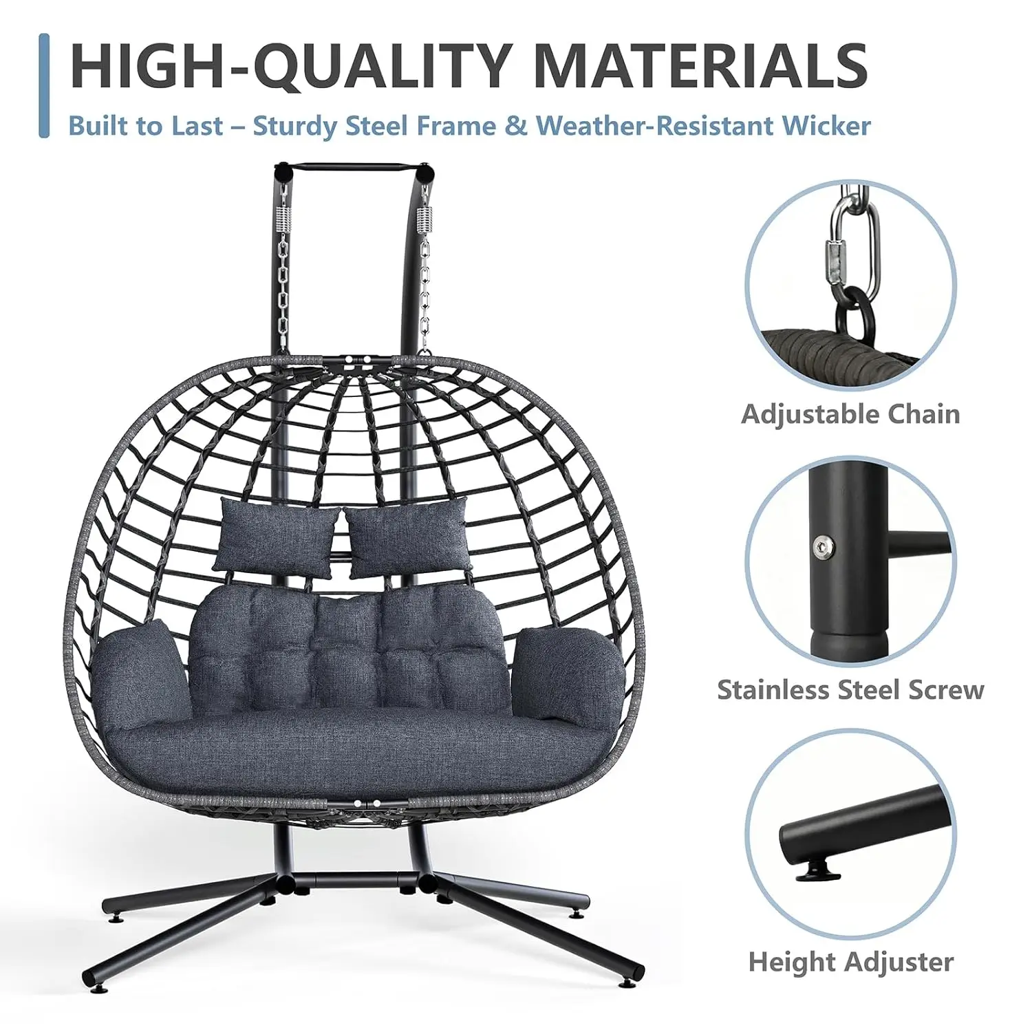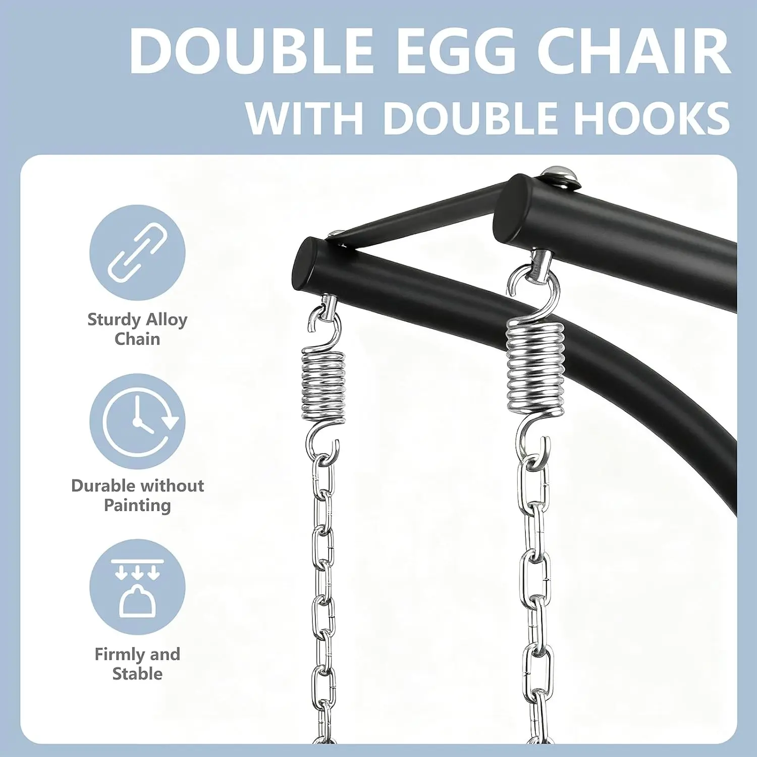 Sturdy & Stable Design: The double egg swing chair with stand features dual hooks and stands for maximum stability. Supporting up to 600 lbs, this double hanging egg chair accommodates two people, making it perfect for couples or families to relax together