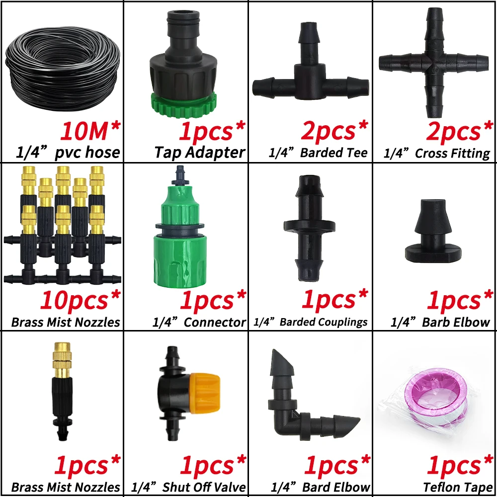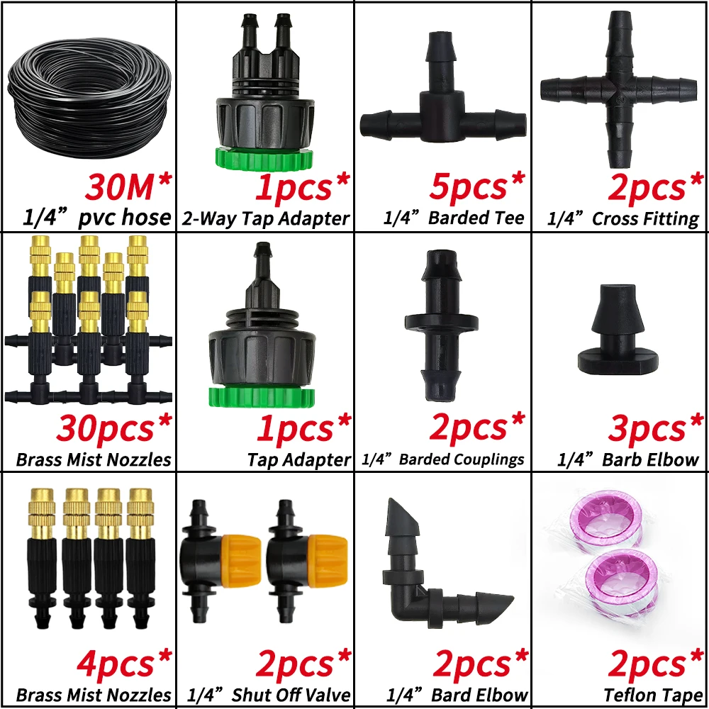 WUJIE 5M-30M Garden Irrigation Outdoor Misting Cooling System Watering 1/4” Brass Atomizer Nozzles 4/7mm Hose Patio Greenhouse